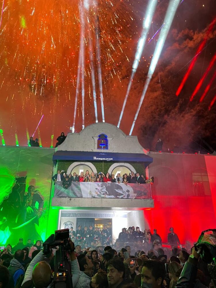 En punto de las 23:00 horas, la alcaldesa Romina Contreras salió al balcón del Palacio Municipal para recordar a los héroes que, en 1910, iniciaron la lucha para dar patria y libertad a México, como Miguel Hidalgo y Costilla, José María Morelos y Pavón, Josefa Ortiz de Domínguez, Ignacio Allende, Juan Aldama y Vicente Guerrero, al tiempo de vitorear a Huixquilucan, al Estado de México y a México.