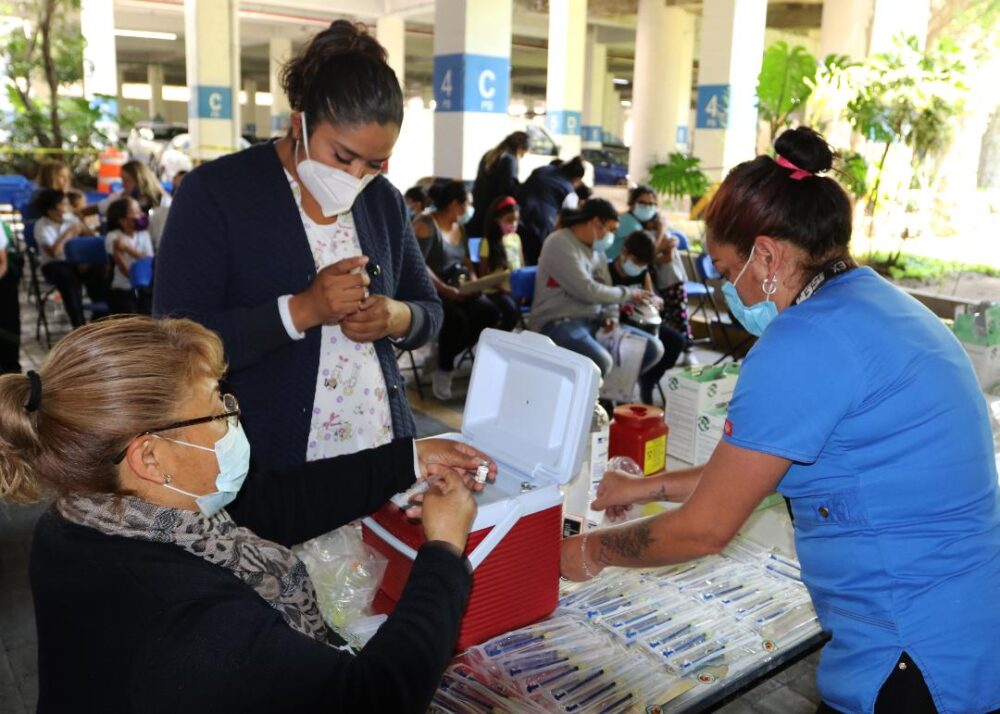 Durante dos días, los dos centros de vacunación peatonales, habilitados en el Centro Comercial Interlomas y en Ciudad Salud para la Mujer, operaron en un horario de las 08:00 a las 16:00 horas, para inmunizar a los menores, con el apoyo de personal de salud de los tres niveles de gobierno, quienes aplicaron más de 10 mil 700 dosis del agente Pfizer pediátrica en esta jornada.