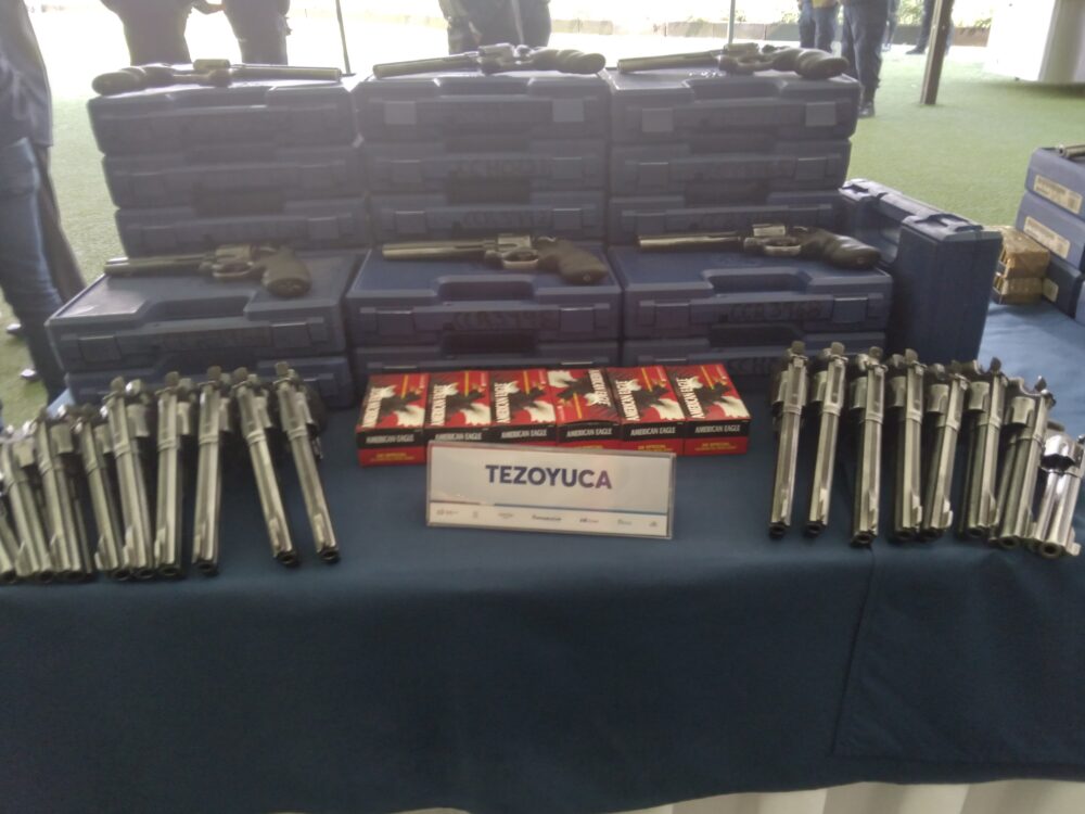 · Luego de un proceso de donación, que inició en 2020, se hizo entrega de un total de 190 armas clase revolver, calibre .38 milímetros; así como dos mil 500 cartuchos calibre .38.