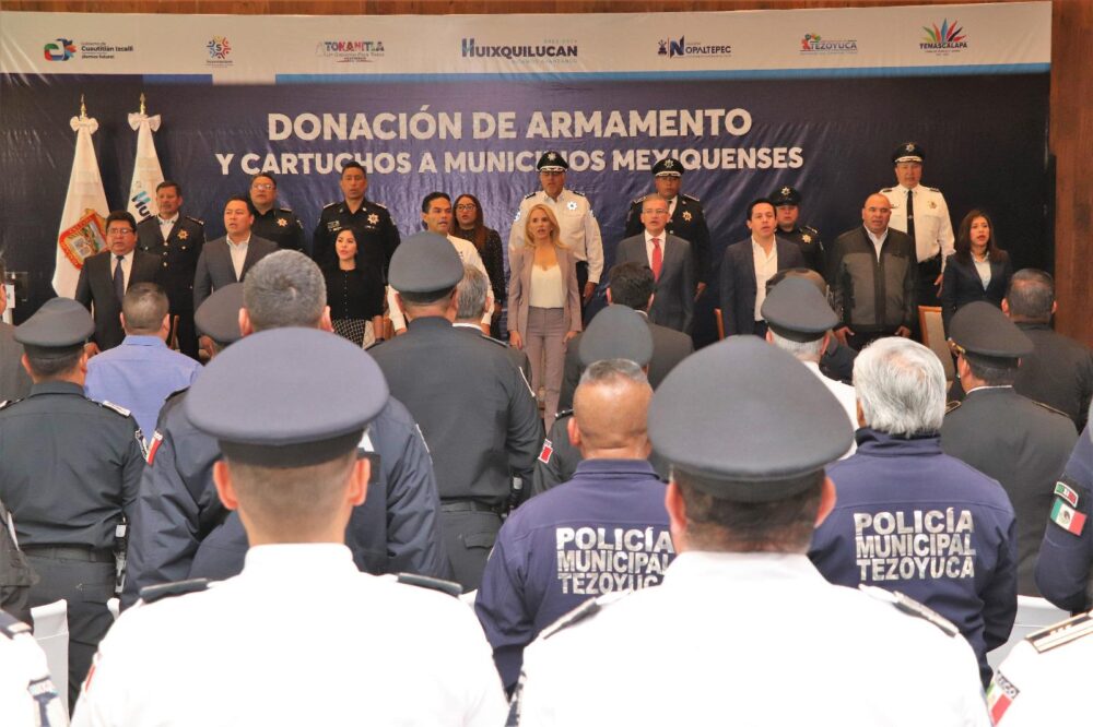 “Agradezco la solidaridad de un gran gobierno, del Gobierno de Huixquilucan, encabezado por Romina Contreras Carrasco, quien, a través de esta donación de armamento, coadyuva con nuestros objetivos en cada municipio de dar mejor calidad de vida a nuestros habitantes y forjar un presente con más seguridad”, expresó.