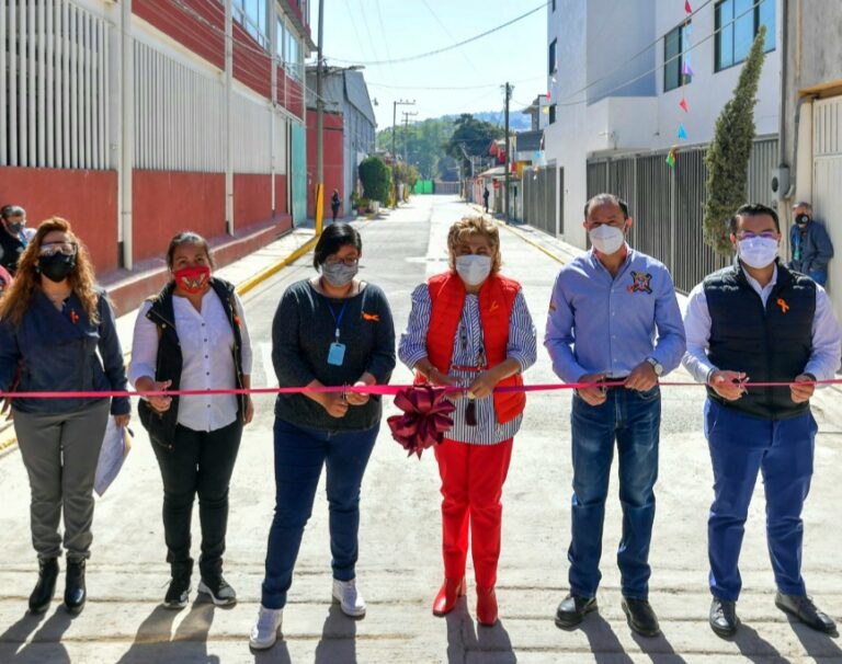 Con todas las medidas sanitarias pertinentes, la Presidente Municipal Ruth Olvera inauguró las calles 4ta. Cerrada de Calzada San Mateo, y la primera, segunda y retorno de la Cerrada de Hornos, donde se colocó concreto hidráulico de 15 cm de espesor en una superficie total de 350.2 ml.