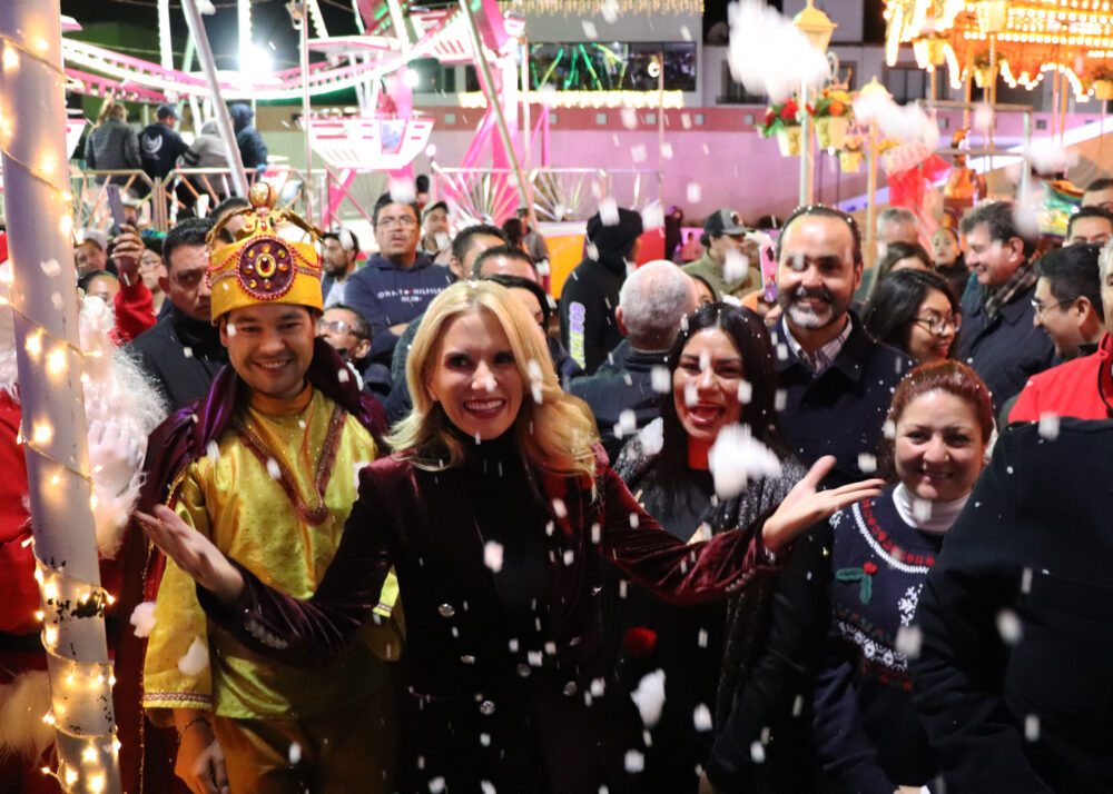 · La presidenta municipal cortó el listón inaugural de este espacio que cuenta con diversas amenidades, entre ellas, un tobogán de hielo, una rueda de la fortuna, un carrusel para niños y adultos, y un Santa Claus gigante, entre otras.