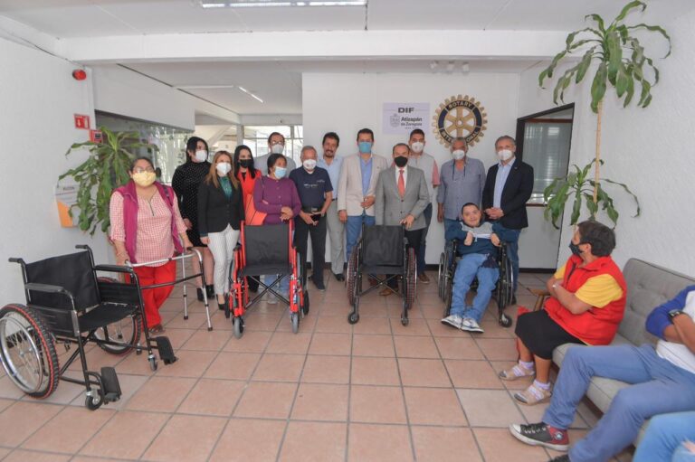 Estado de México, Atizapán de Zaragoza.-El Presidente Municipal de Atizapán de Zaragoza, Pedro Rodríguez Villegas, se reunió con integrantes del Club Rotario Renacimiento Satélite, quienes hicieron entrega de tres sillas de ruedas a personas con escasos recursos.